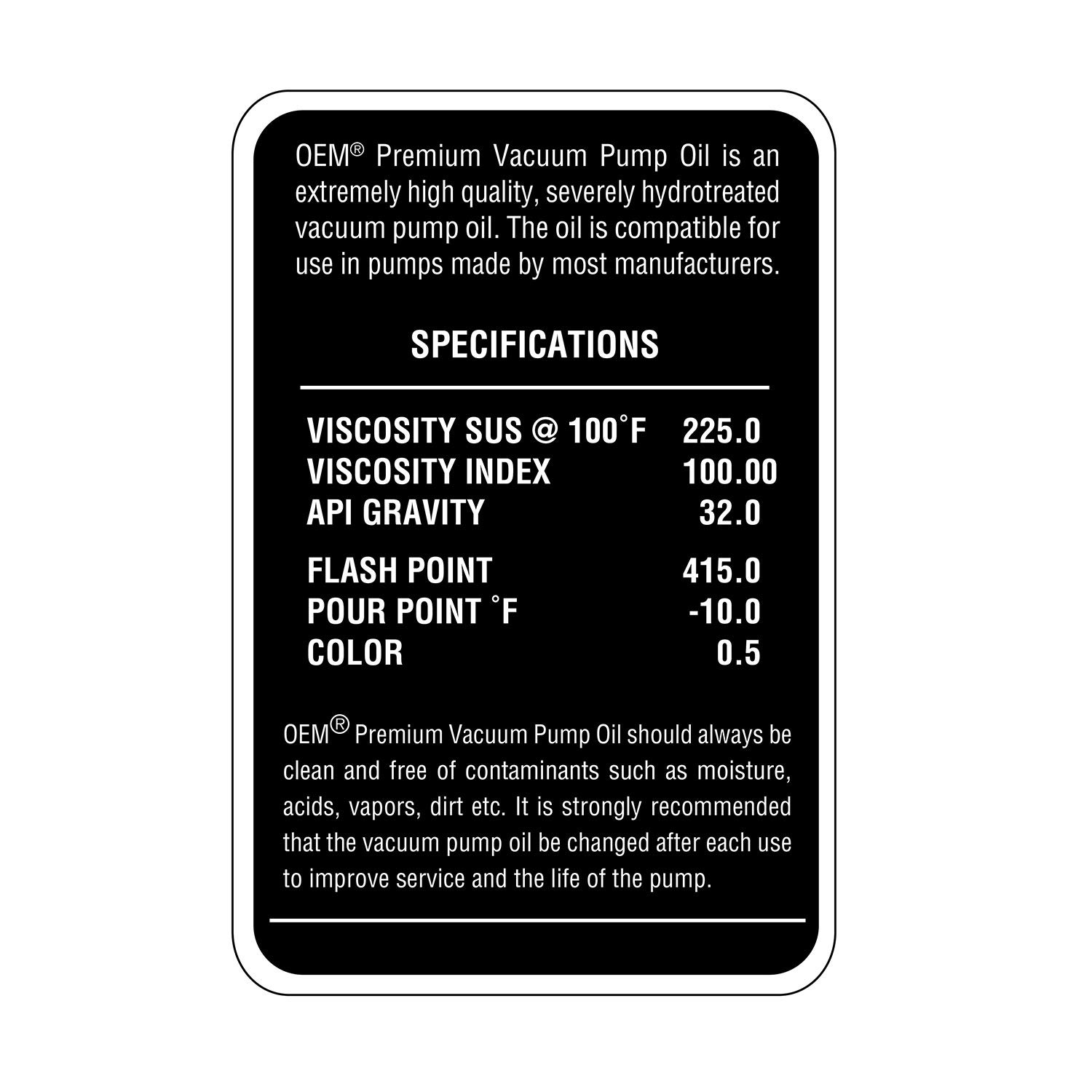 vacuum oil specification