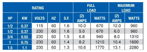 well pump wattage usage